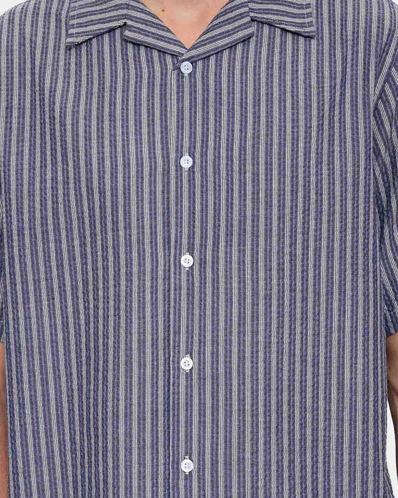 Thrills Gardens Stripe Bowling Shirt - Ebony