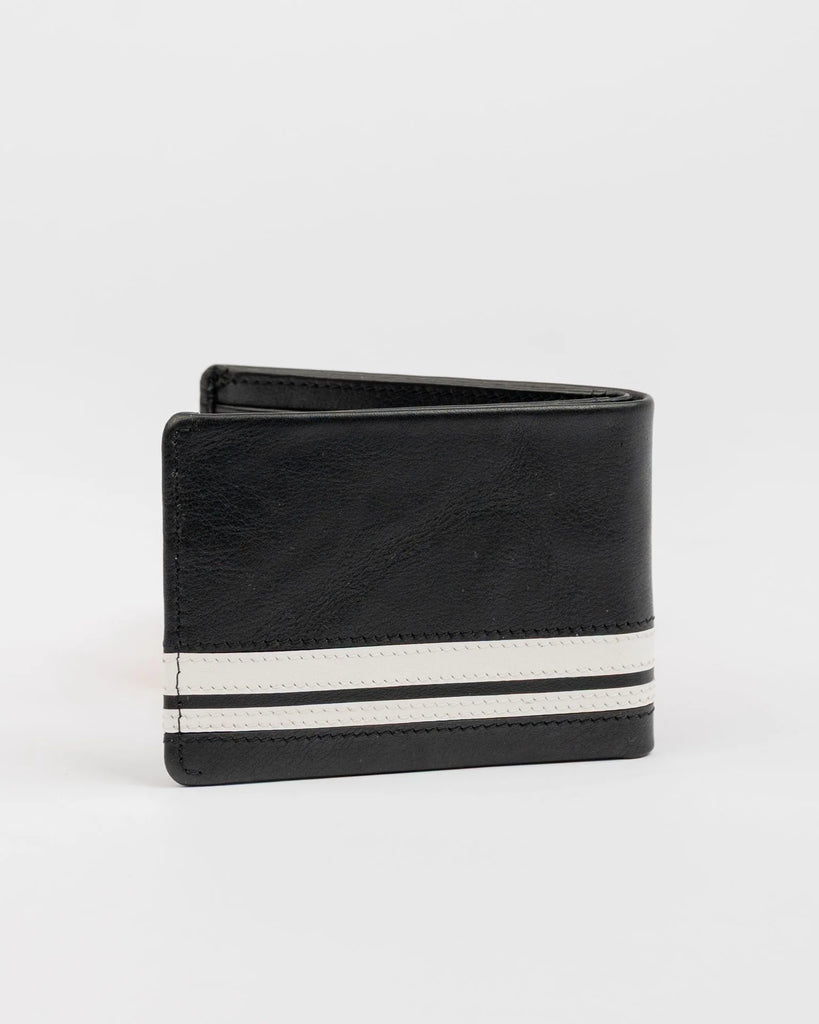 Genuine Leather Bi-fold Wallet With Rfid Blocking Material And Contrast Stripes. 100% Cowhide Leather