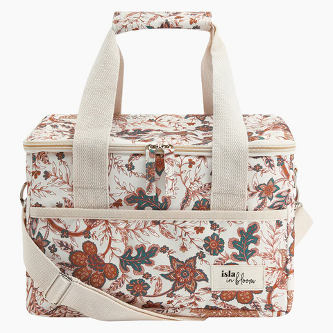The warm bohemian design of our Willow cooler bag features earthy florals set against a neutral backdrop ~ designed for the adventurous ones.